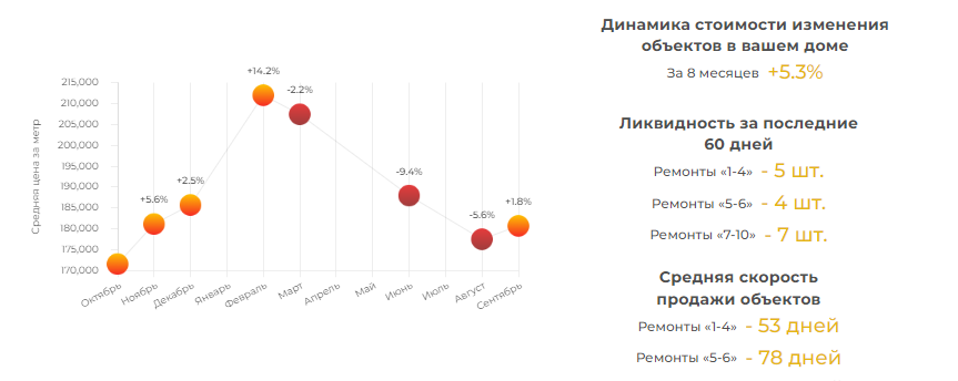 Какая в среднем доля квартир из взятых в работу, которые были проданы?